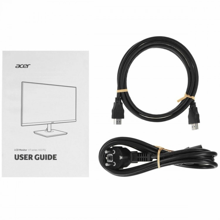Монитор Acer V227QE3bi оснащён входами HDMI и VGA, что позволяет подключить его к различным устройствам. В комплекте с монитором вы получите документацию, кабель HDMI и кабель питания.