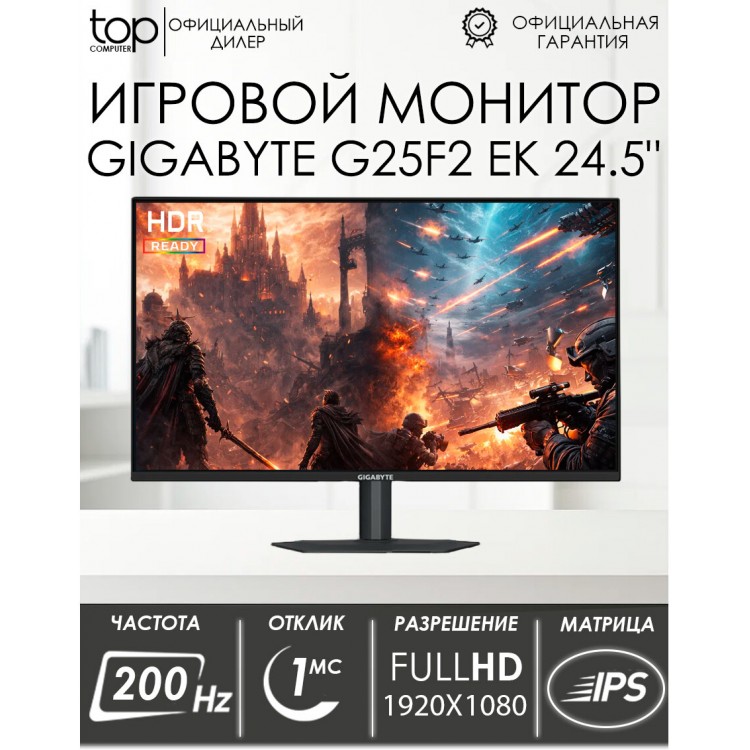 | Название | Игровой монитор Gigabyte G25F2 EK (20VM0-G25F2BM-1EKS), 24.5" IPS, 1920x1080, 200 Гц |