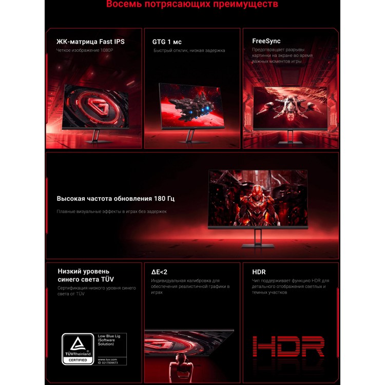 * Яркость и время отклика. Яркость 250 кд/м² и время отклика 1 мс обеспечат вам комфортное использование и чёткое изображение даже в динамичных играх.