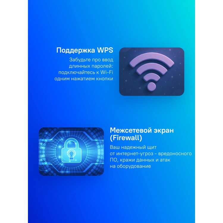 - Два диапазона Wi-Fi: 2,4 и 5 ГГц для одновременной работы нескольких устройств.
