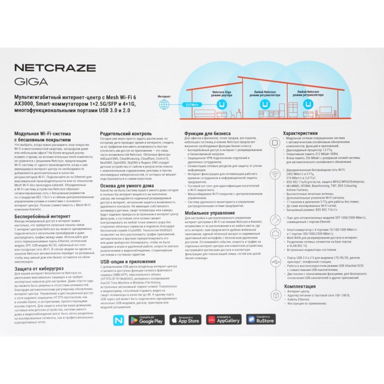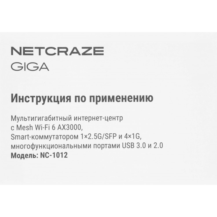 | Описание | Мультигигабитный интернет-центр с Mesh Wi-Fi 6 AX3000, Smart-коммутатором с 4 портами Gigabit Ethernet и 1 портом 2.5 Gigabit Ethernet, комбо-портом SFP, портами USB 3.0 и 2.0 |