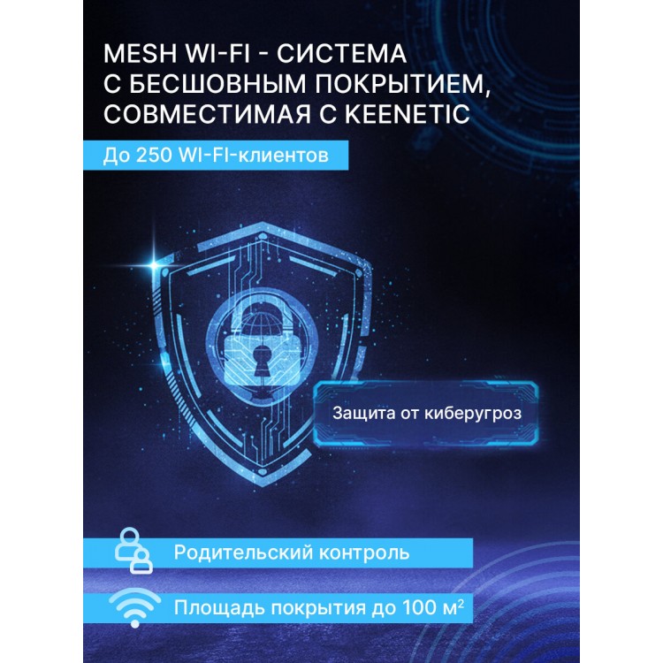 Keenetic Netcraze Orbiter 6 оснащена тремя внутренними антеннами и поддерживает Mesh Wi-Fi, что обеспечивает широкое покрытие сигналом и стабильную связь даже на больших расстояниях. Также доступны функции VPN (IPSec, OpenVPN) и различные методы шифрования (WEP, WPA, WPA2 и другие), что гарантирует безопасность вашей сети.