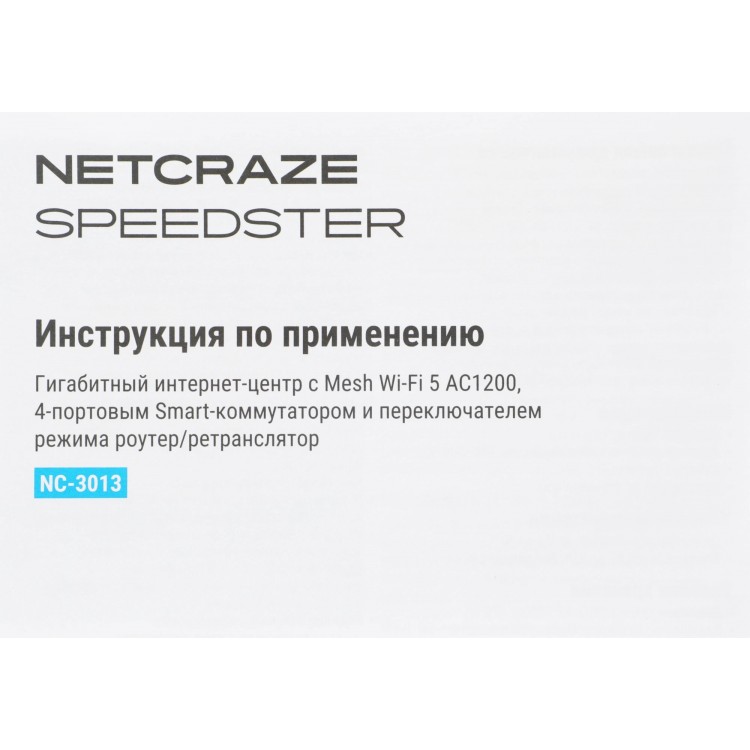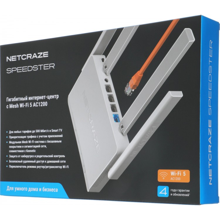 | Комплектация | Роутер беспроводной Keenetic Netcraze Speedster, адаптер питания: 12 В 1 A; кабель Ethernet; инструкция по применению. |
