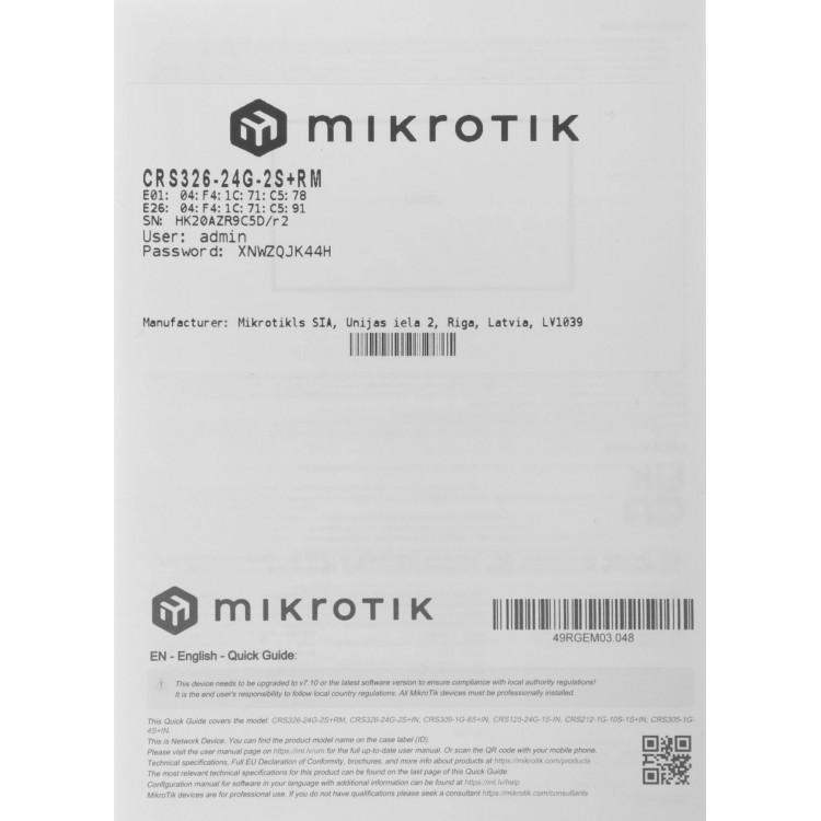 | PartNumber/Артикул Производителя | CRS326-24G-2S+RM |