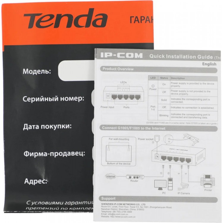 Ищете качественное и надёжное сетевое оборудование по доступной цене? Тогда вам нужен коммутатор TENDA F1005 от бренда IP-COM!