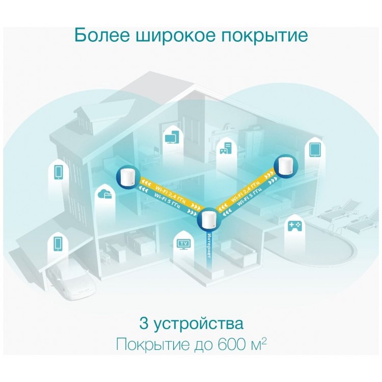- Высокая скорость и покрытие. Благодаря технологии TP-Link Mesh Wi-Fi система обеспечивает быстрый и стабильный Wi-Fi на каждом уголке вашего дома.