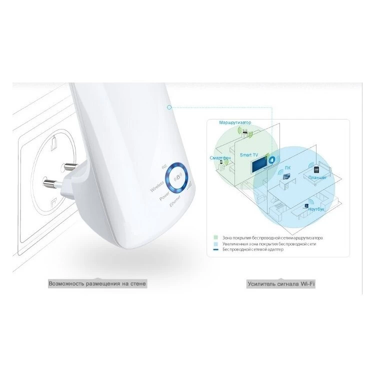 Купил. Принёс. Включил. С двух планшетов зайти в настройки по вафле не смог. Собственно нюанс. После коннекта с репитером по WiFi нужно в адресной строке браузера писать не "tplinkextender.net", а IP самого репитера по умолчанию: 192.168.0.254. Собственно, его можно после соединения глянуть в дополнительных настройках подключения. Больше вопросов не возникло и после нажатия кнопки "Finish" через пару минут мигания лампочками девайс заработал. Итог: в бытовке, где до этого интернет с далеко стоящего роутера иногда появлялся в виде одного деления, сейчас нормальный коннект в две лампочки репитера из пяти. Сигнал стабильный. Устройство чуть тёплое. Я доволен, чего и вам желаю.