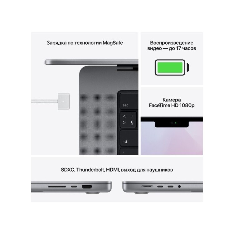 * Яркий экран: Liquid Retina XDR с разрешением 3024x1964 создаёт чёткое и яркое изображение.