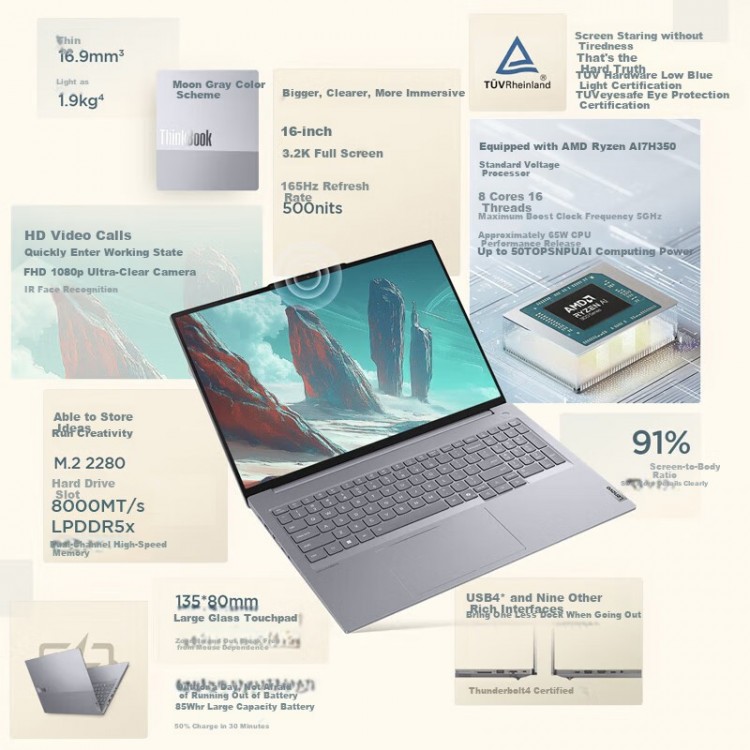 Дисплей с диагональю 16 дюймов и разрешением 2560x1600 пикселей обеспечивает яркое и чёткое изображение. А частота обновления 165 Гц делает картинку плавной и без рывков.