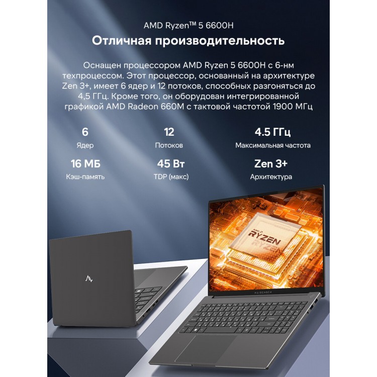 * Мощный процессор AMD Ryzen 7 6600H обеспечивает быструю и плавную работу даже при выполнении сложных задач.