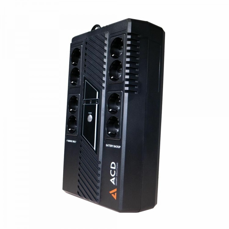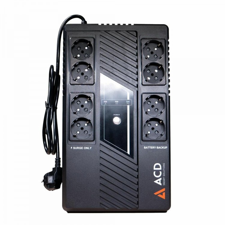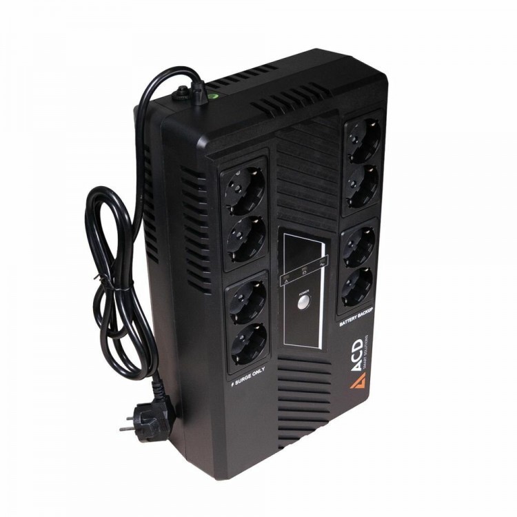 Название ИБП ACD PW-Entry 800; Тип ИБП интерактивный; Выходная мощность (полная) 800 ВА; Выходная мощность (активная) 480 Вт; Форма выходного сигнала ступенчатая аппроксимация синусоиды; Время переключения на батарею 10 мс; Входное напряжение 1-фазное; Выходное напряжение 230 В; Количество выходных разъемов питания (общее) 8; Количество выходных разъемов питания (UPS) 4; Тип выходных разъемов питания CEE 7 (евророзетка); Мин. входное напряжение 162 В; Макс. входное напряжение 290 В; Мин. входная частота 47 Гц; Макс. входная частота 63 Гц; Стабильность выходного напряжения (батарейный режим) 10 %; Функции защиты защита от КЗ, защита от перегрузки, защита телефонной линии; Интерфейсы USB, Ethernet 10/100; Время зарядки 8 ч; Отображение информации светодиодные индикаторы; Особенности холодный старт, Автовключение после восстановления напряжения на входе. Функция ", старта. Поддержка зарядки в выключенном состоянии. Параметры выхода USB - 5VDC/2.1A, холодного"; Ширина 200 мм; Высота 100 мм; Глубина 345 мм; Вес 5.5 кг; Дополнительная информация Свинцово-кислотный; Гарантийный срок 1 г; Цвет черный;