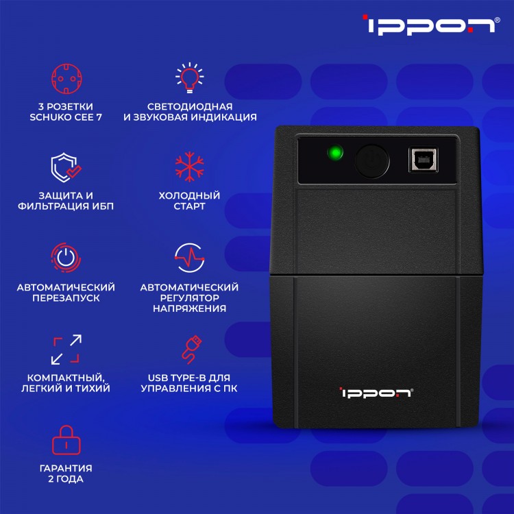 | Особенности ИБП | автоматический регулятор напряжения, холодный старт |