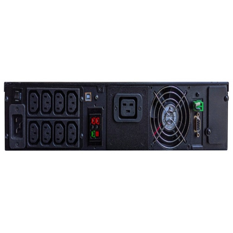 В качестве защиты серверов, замечательно подошёл, надёжная защита, много розеток, шесть штук с батарейным питанием, на борту стоит три аккумулятора по 9 Ач каждый, при необходимости можно менять не выключая бесперебойник, так как поддерживает горячую замену. Без проблем встал в стойку 19 дюймов вместе с серверами