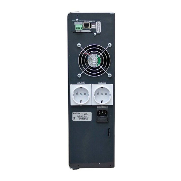 Название ИБП с двойным преобразованием Штиль SW1000L; Бренд Штиль; Тип ИБП с двойным преобразованием; Без аккумулятора нет; Выходная мощность (полная) 1000 ВА; Выходная мощность (активная) 900 Вт; Время работы при полной нагрузке 6 мин; Время работы при половинной нагрузке 18 мин; Форма выходного сигнала синусоида; Входное напряжение 1-фазное; Выходное напряжение 1-фазное; Количество выходных разъемов питания (общее) 2; Количество выходных разъемов питания (UPS) 2; Тип выходных разъемов питания CEE 7 (евророзетка); Коэффициент полезного действия 95 %; Коэффициент нелинейных искажений 4 %; Мин. входное напряжение 90 В; Макс. входное напряжение 295 В; Мин. входная частота 45 Гц; Макс. входная частота 55 Гц; Входной коэффициент мощности 0.99; Стабильность выходного напряжения (батарейный режим) 2 %; Мин. выходная частота 50 Гц; Макс. выходная частота 50 Гц; Тип предохранителя плавкий; Функции защиты защита от высоковольтных импульсов, защита от перегрузки, - «глубокого» разряда батареи., - внутреннего перегрева, - импульсных перенапряжений и сетевых помех, ДА, Защита от: - короткого замыкания и длительной перегрузки по выходу; Интерфейсы Ethernet, RS-232, USB, сухие контакты; Отображение информации ЖК-экран; Особенности автоматический By-pass, звуковая сигнализация, поддержка SNMP, подключение дополнительных батарей; Ширина 357 мм; Высота 379 мм; Глубина 116 мм; Вес 6 кг; Дополнительная информация Электронный автоматический байпас; Срок службы 10 лет, Эксплуатация строго в соответствии с инструкцией; Гарантийный срок 2 г., повреждение пломбы лишает изделие гарантии; Цвет серый;