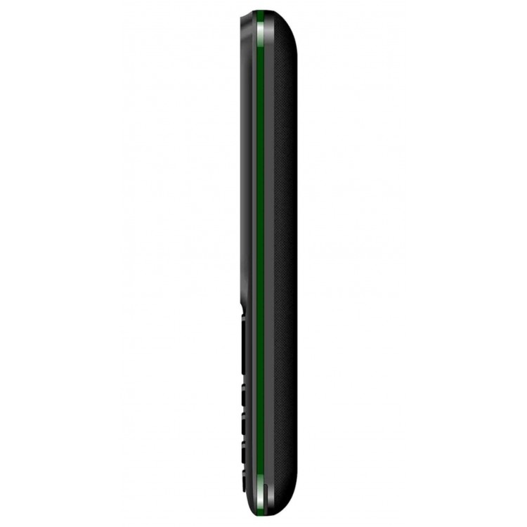 Стильный корпус из пластика с диагональю 2,4 дюйма (цвет чёрный/зелёный) оснащён двумя слотами для SIM-карт. Телефон оснащён TN-дисплеем с разрешением 320х240 пикселей.