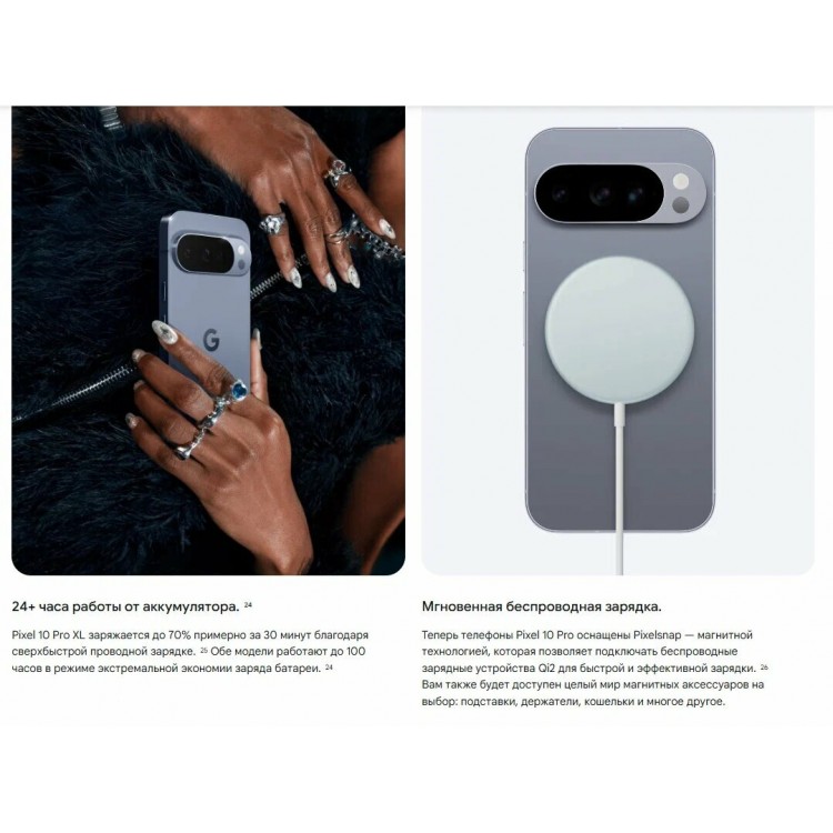 Название Смартфон Google Pixel 10 Pro XL 16/256GB, Porcelain (бежевый), Dual: nano SIM + eSIM; Бренд Google; Обязательные программы предустановлены Нет; Цвет товара Бежевый; Версия Для других стран; Версия ОС на начало продаж Android 16; Операционная система Android; Тип корпуса Классический; Материал корпуса Алюминий и стекло; Степень защиты IP68; Количество SIM-карт Dual: nano SIM + eSIM; Вес 232 г; Размеры (ШxВxТ) 76.6x162.8x8.5 мм; Диагональ экрана 6.8"; Разрешение экрана 1344x2992; Формат разрешения экрана Full HD; Тип матрицы экрана LTPO OLED; Особенности экрана Сенсорный экран, устойчивое к царапинам стекло, цветной экран; Число пикселей на дюйм 486; Частота обновления экрана 120 Гц; Функции камеры Автофокусировка, оптическая стабилизация, основная камера, фронтальная камера, Сверхширокоугольный объектив, Тройная камера, Широкоугольный объектив; Количество основных камер 3; Разрешение основной камеры (точно) 50 Мпикс; Характеристики основной камеры 50 МП, ƒ/1.68, OIS; Максимальное разрешение видеосъемки 3840x2160; Разрешение фронтальной камеры 48 Мпикс; Разъем для наушников USB Type-C; Стандарт связи 2G, 3G, 4G LTE, 5G; Беспроводные интерфейсы Bluetooth, NFC, Wi-Fi, USB Type-C; Стандарт Wi-Fi 802.11 802.11ax; Версия Bluetooth 6.0; Навигационная система A-GPS, BeiDou, GPS, WPS, ГЛОНАСС; NFC Да; Процессор Google Tensor G5; Встроенная память 256 ГБ; Оперативная память 16 ГБ; Емкость аккумулятора (точно) 5200 мА·ч; Тип разъема для зарядки USB-C; Функции зарядки Беспроводная зарядка, быстрая зарядка, Зарядка внешних устройств; Крепление аккумулятора Несъемный; Особенности LiDAR, акселерометр, гироскоп, датчик освещенности, датчик приближения, стереодинамики, стилус, фонарик, Безрамочный дисплей, Датчик распознавания лица, Сканер отпечатка пальца; Аутентификация Разблокировка по лицу, сканер отпечатка пальца; Подробная комплектация Смартфон, кабель USB-C, инструмент для извлечения SIM карты; Дата анонсирования 20 августа 2025; Дата старта продаж 28 августа 2025; Габариты транспортной упаковки 9.5x18x5.1; Вес в килограммах с учетом упаковки 0.39; Гарантийный срок 1 г; Цвет фарфор;