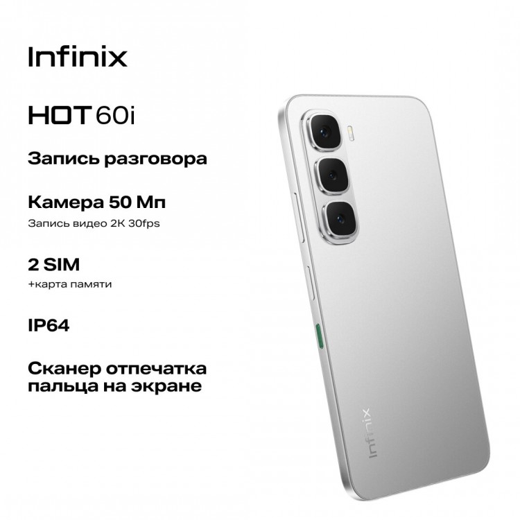 Смартфон Infinix HOT 60i 4/128GB Titanium Silver (серебристый титан)