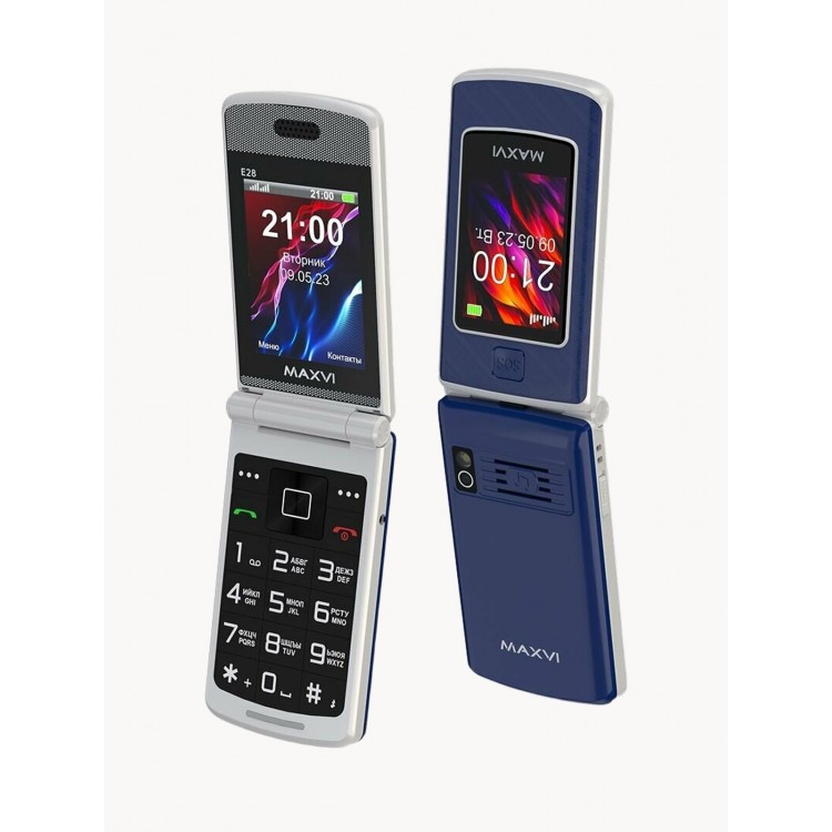 Смартфон MAXVI E28 Blue в синем цвете — это стильное и практичное устройство для связи и развлечений. Благодаря раскладному корпусу и пластиковому материалу он не только удобен в использовании, но и отличается прочностью.