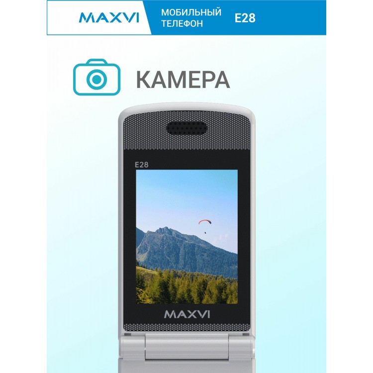 | Название | Телефон-раскладушка кнопочный с фонариком и кнопкой SOS Maxvi E28 голубой |