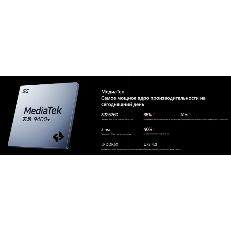 * Мощный процессор. Mediatek Dimensity 9400+ обеспечивает высокую производительность.