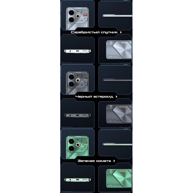 Название Смартфон TECNO Pova 6 Neo; Бренд TECNO; Цвет товара comet green; Версия Global для РФ; Версия ОС на начало продаж Android 14; Тип корпуса классический; Материал корпуса пластик; Степень защиты IP53; Количество SIM-карт Dual nano SIM; Вес 225 г; Размеры (ШxВxТ) 76.6x168.6x9.23 мм; Дисплей 6.8" (2460x1080), Full HD, IPS; Особенности экрана сенсорный экран, цветной экран, Multitouch; Число пикселей на дюйм (PPI) 396; Частота обновления экрана 120 Гц; Функции камеры автофокусировка, основная камера, тыловая вспышка, фронтальная вспышка, фронтальная камера, Автофокус; Количество основных (тыловых) камер 2; Разрешение основной камеры 50 МП; Характеристики основной камеры диафрагма: 1.6; Характеристики основной камеры 2 датчик освещенности 0.08 Мп; Макс. разрешение видео 2560x1440; Видеосъемка (основная камера) 2560x1440/30fps, 1920x1080/60fps, 1920x1080/30fps; Разрешение фронтальной камеры 8 МП; Выход на наушники mini jack 3.5 mm; Стандарт связи 2G, 3G, 4G LTE, 2G/3G/4G (LTE), 2G/3G/4G(LTE); Беспроводные интерфейсы Bluetooth, NFC, Wi-Fi, 3.5 мм, GPS, USB Type-C; Стандарт Wi-Fi 802.11ac; Стандарт Bluetooth 5.3; Геопозиционирование A-GPS, BeiDou, GPS, Galileo, ГЛОНАСС; Поддержка NFC есть; Процессор MediaTek Helio G99 Ultimate; Характеристики процессора частота: 2200 МГц; количество ядер: 8; 2x2.2 ГГц Cortex-A76, 6x2.0 ГГц Cortex-A55; видеопроцессор: Mali-G57 MC2; Встроенная память 256 ГБ; Оперативная память 8 ГБ; Слот для карт памяти есть; Емкость аккумулятора 7000 мА⋅ч; Время в режиме воспроизведения видео 14 ч; Тип разъема для зарядки USB-C; Функции зарядки быстрая зарядка, Зарядка внешних устройств; Аккумулятор несъемный; Особенности FM-радио, акселерометр, гироскоп, датчик освещенности, датчик приближения, игровой, компас, стереодинамики, Безрамочный дисплей, Датчик движения, Датчик распознавания лица, Сканер отпечатка пальца; Аутентификация разблокировка по лицу, сканер отпечатка пальца на передней панели, сканер отпечатка пальца сбоку, Сканер отпечатка, разблокировка по отпечатку пальца; Заводская комплектация Смартфон,USB кабель,адаптер питания,инструмент для извлечения сим-карты,чехол; Особенности Цифровое увеличение 10x; Дата анонсирования 04.2024; Дата старта продаж 05.2024; Габариты транспортной упаковки 9.40х19.50х5.20 см; Вес в транспортной упаковке 0.54 кг; Срок службы 5 лет; Гарантийный срок 1 г; Цвет зеленая комета;