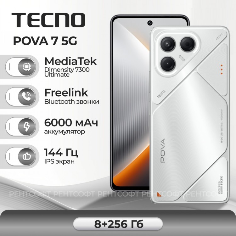 Ищете надёжный смартфон по выгодной цене в Рязани? Тогда обратите внимание на модель TECNO Pova 7 5G 8/256GB Magic Silver! Этот серебристый красавец с классическим корпусом оснащён мощным процессором MediaTek Dimensity 7300 Ultimate и оперативной памятью 8 ГБ, что обеспечивает быструю и стабильную работу устройства. Встроенная память — 256 ГБ, этого достаточно для хранения большого количества информации.