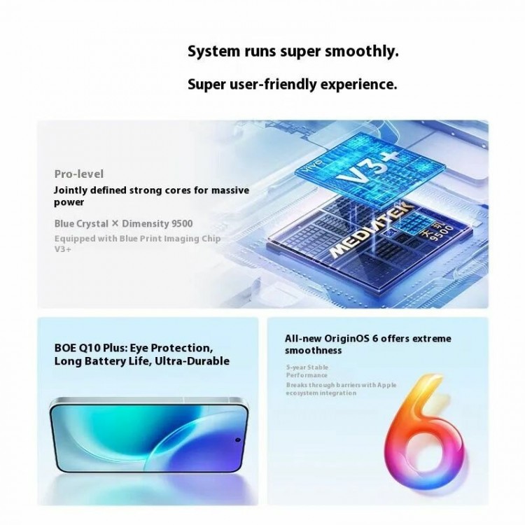 Стильный и мощный смартфон Vivo X300 с 6,31-дюймовым AMOLED-дисплеем и частотой обновления 120 Гц обеспечит яркое и плавное изображение. Благодаря процессору Dimensity 9500 и 16 ГБ оперативной памяти этот смартфон справится с любыми задачами. Встроенная память на 512 ГБ позволит хранить все ваши файлы и приложения.