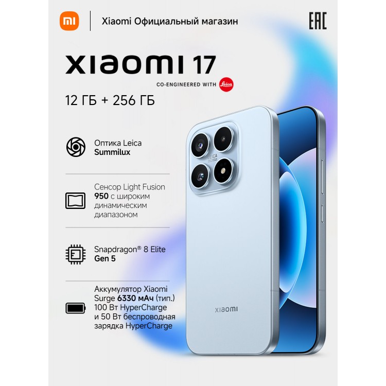 Смартфон Xiaomi 17 5G 12/256GB (NFC) (RU/A) Ice Blue (голубой)