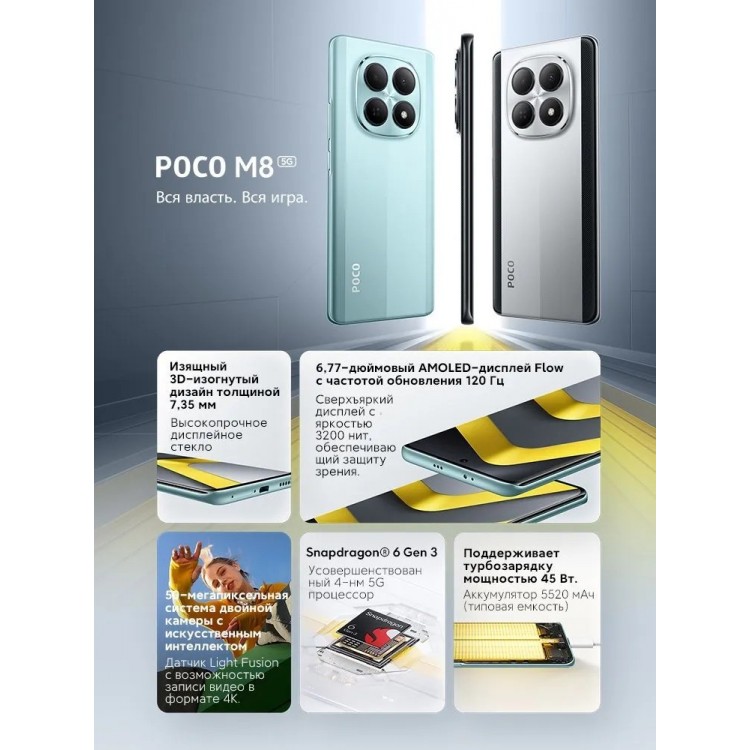 | Название | Смартфон | POCO M8 5G | Snapdragon 6 Gen 3 | 6.77" | 5520mAh | глобальная версия | 100% поддержка русского языка |