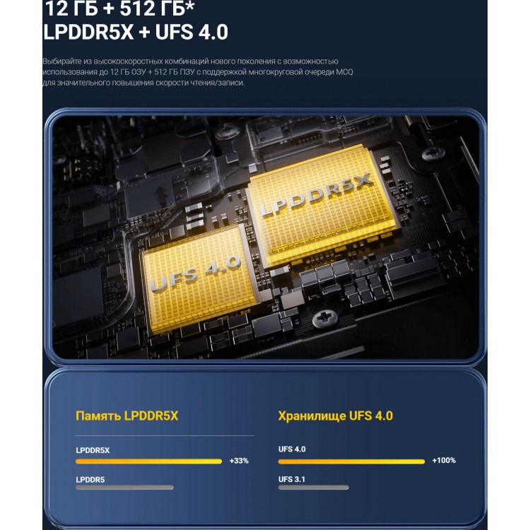 - Процессор Dimensity 8300 Ultra с 8 ядрами и тактовой частотой 3350 МГц обеспечивает быструю и стабильную работу устройства.
