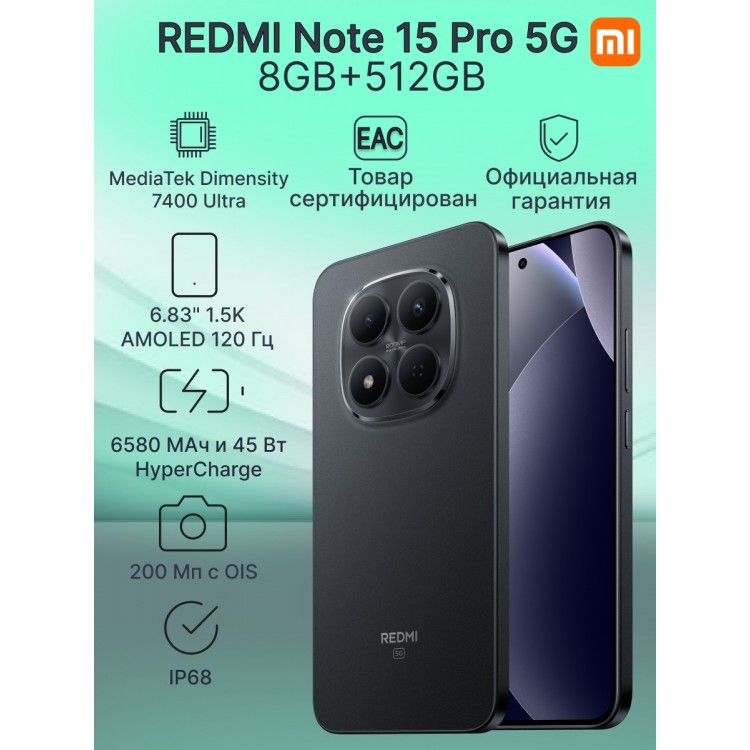| Название | Смартфон Xiaomi REDMI Note 15 Pro 5G 8GB+512GB Black Ростест |