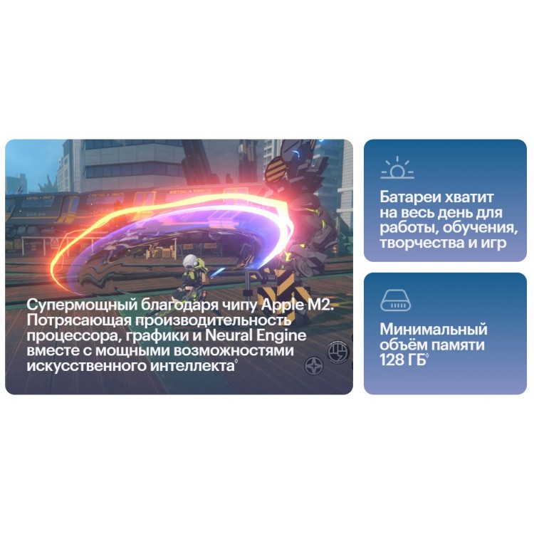 Название Планшет Apple iPad Air 13 2024; Объем встроенной памяти 512 ГБ; Объем оперативной памяти 8 ГБ; Сотовая связь нет; Операционная система iPadOS; Версия ОС iPadOS; Процессор Apple M2 3490 МГц; Количество ядер 8; Видеопроцессор Apple graphics 10-core; Тип оперативной памяти LPDDR5; Поддержка карт памяти нет; Экран 13" (2732x2048), IPS, 60 Гц; Число пикселей на дюйм (PPI) 264; Стандарт Wi-Fi 802.11ax; Версия Bluetooth 5.3; Количество тыловых камер 1; Разрешение основной камеры 12 МП; Разрешение фронтальной камеры 12 МП; Функции камеры автофокус, тыловая камера, фронтальная камера; Особенности акселерометр, барометр, встроенный микрофон, гироскоп, датчик освещенности; Тип разъема для зарядки USB Type-C; Разъем аудио/наушники USB Type-C; Размеры (ДхШхГ) 280.6x214.9x6.1 мм; Вес 617 г; Год начала продаж 2024; Материал корпуса металл; Срок службы 12 мес., По данным завода изготовителя; Гарантийный срок 1 мес., Ограниченная гарантия от производителя - 1 год, гарантия магазина на обнаружение заводского брака - 30 дней; Цвет фиолетовый;