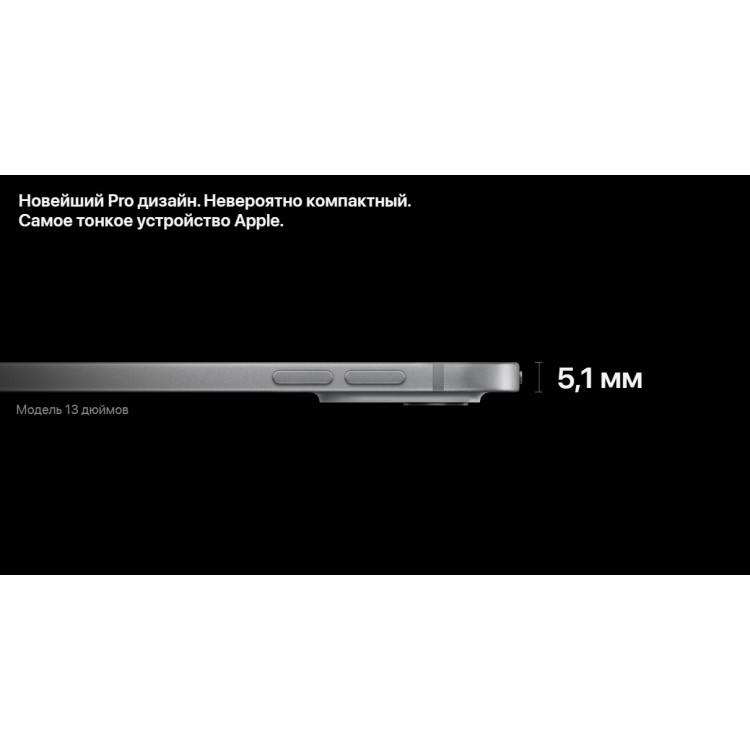 Название Планшет Apple iPad Pro 13 2024; Бренд Apple; Объем встроенной памяти 2048 ГБ; Объем оперативной памяти 16 ГБ; Сотовая связь 5G; Операционная система iPadOS; Версия ОС iPadOS; Процессор Apple M4 4400 МГц; Видеопроцессор Apple graphics 10-core; Тип оперативной памяти LPDDR5; Поддержка карт памяти нет; Экран 13" (2752x2064), OLED, 120 Гц; Число пикселей на дюйм (PPI) 264; Стандарт Wi-Fi 802.11ax; Версия Bluetooth 5.3; Количество тыловых камер 1; Разрешение основной камеры 12 МП; Разрешение фронтальной камеры 12 МП; Функции камеры автофокус, тыловая камера, фронтальная камера; Особенности акселерометр, барометр, встроенный микрофон, гироскоп, датчик освещенности, сканер LiDAR; Комплект стекло с нанотекстурой; Тип разъема для зарядки USB Type-C; Разъем аудио/наушники USB Type-C; Размеры (ДхШхГ) 281.6x215.5x5.1 мм; Вес 582 г; Год начала продаж 2024; Материал корпуса металл; Срок службы 1 г; Гарантийный срок 1 г., Возврат устройств с браком осуществляется в течение 7 дней с момента продажи (после диагностики в сервисном центре). С косметическими повреждениями (царапины, сколы и тд) в течение 7 дней и только неактивированных устройств. Гарантия Apple 1 год; Бренд графического процессора Apple; Бренд процессора Apple; Защита от влаги Да; Макс. время работы (видео), ч 10; Макс. время работы (музыка), ч 10; Модель устройства Apple iPad Pro 11 (2024); Наличие клавиатуры Опционально; Размеры, мм 281.6х215.5х5.1; Разъемы USB Type-C; Цвет черный космос;
