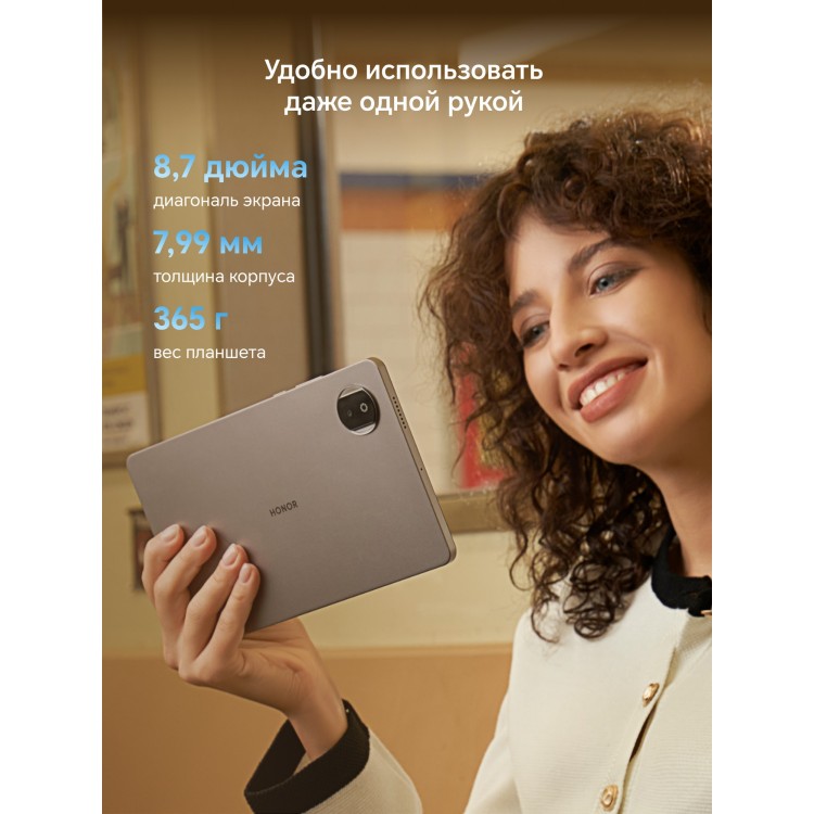 * Яркий экран. Диагональ экрана 8,7 дюйма и разрешение 1340x800 пикселей обеспечивают чёткое и яркое изображение. Частота обновления 90 Гц делает использование планшета ещё более комфортным.