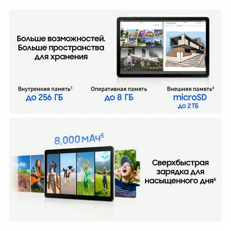 Диагональ экрана 10,9 дюймов и разрешение 2112x1320 пикселей создают яркое и чёткое изображение, а частота обновления 90 Гц обеспечивает плавность движений. Слот для карт памяти MicroSD позволяет расширить объём хранения данных до 2048 ГБ.