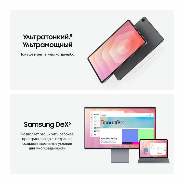 Восьмиядерный процессор Dimensity 9400 с частотой 3.73 ГГц обеспечивает быструю и плавную работу устройства. Диагональ экрана 11 дюймов и разрешение 2560x1600 позволяют наслаждаться ярким и чётким изображением. Частота обновления 120 Гц и матрица Dynamic AMOLED 2X делают картинку более насыщенной и детализированной.