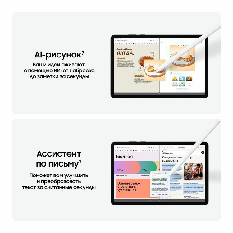 Две основные камеры по 13 Мпикс и фронтальная на 12 Мпикс позволяют делать качественные снимки и вести видеоконференции. Стилус в комплекте даёт возможность использовать планшет как цифровое перо. Пыле- и влагозащита, ударопрочный корпус делают устройство надёжным в любых условиях.