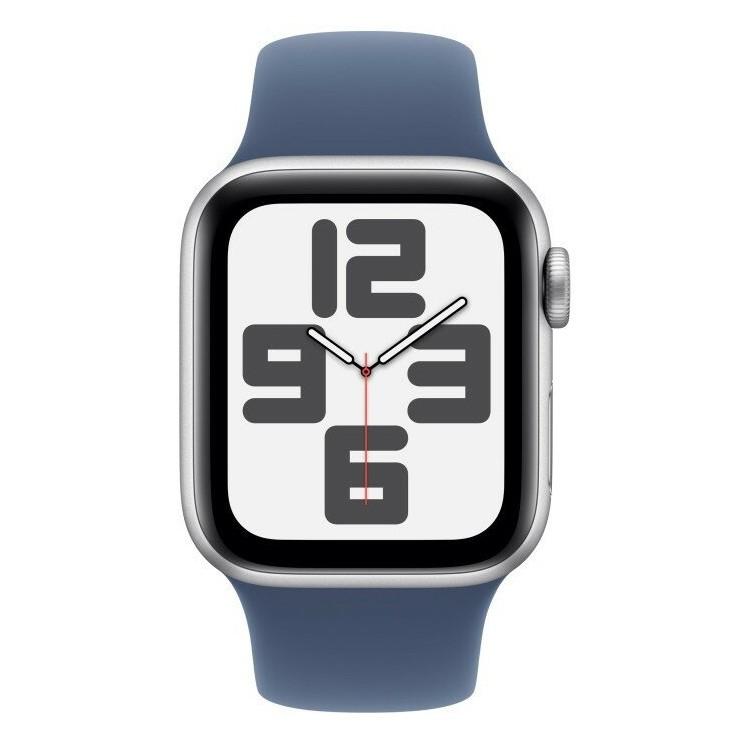 Умные часы Apple Watch SE 2024 GPS 44 мм Aluminium Case with Sport Band (S/M) (серебристый/джинсовый)