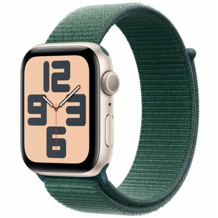 Умные часы Apple Watch SE 2024 GPS 44 мм Aluminium Case with Sport Loop (O/S) (сияющая звезда/зеленый)