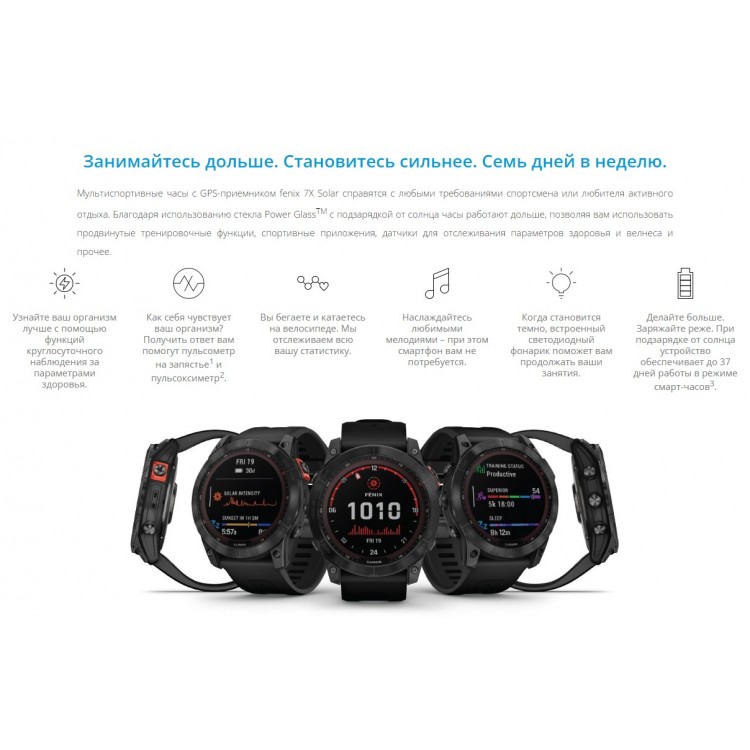 Умные часы Garmin Fenix 7X Solar — ваш надёжный помощник и стильный аксессуарХотите всегда быть в курсе своего физического состояния и иметь под рукой многофункциональный гаджет? Тогда вам точно понравятся умные часы Garmin Fenix 7X Solar!