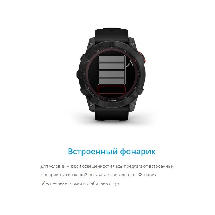 | Особенности | беспроводная зарядка, воспроизведение аудио, фонарик, GARMIN PAY, V02 max, есть, настраиваемый экономичный режим часов, режим Экспедиция |
