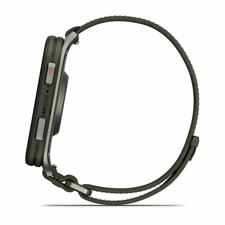 * Стильный дизайн. Тёмно-зелёный цвет часов Garmin Venu X1 подчеркнёт ваш индивидуальный стиль. Прямоугольный корпус из полимера и титана, а также нейлоновый браслет делают эти часы удобными и надёжными.