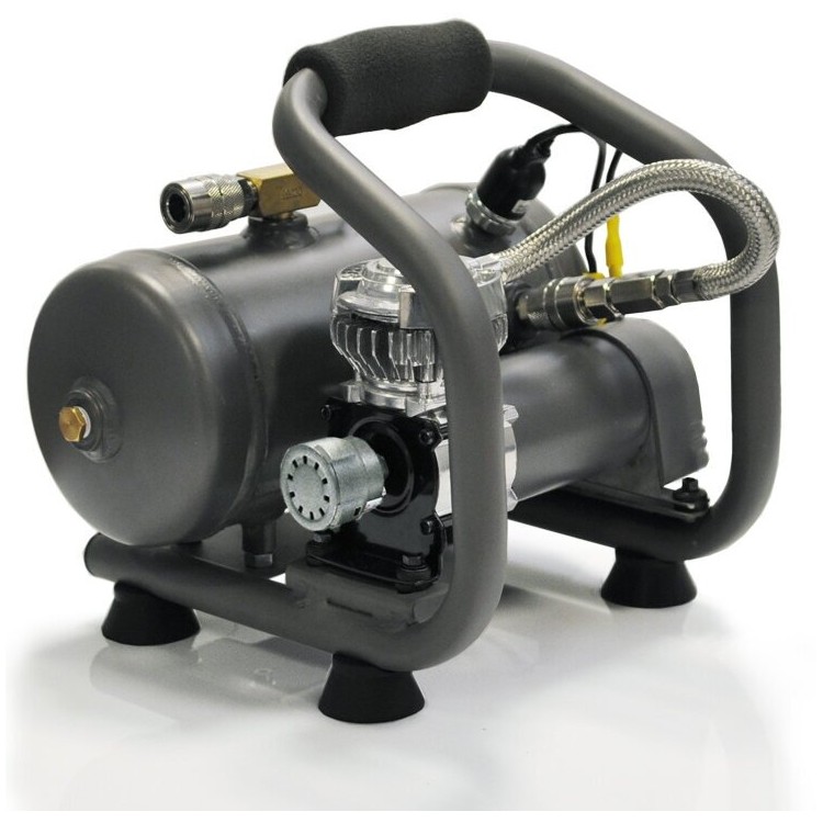 * Дополнительные функции: оснащён спускным клапаном и пневмопистолетом для накачки шин, а также регулятором давления.