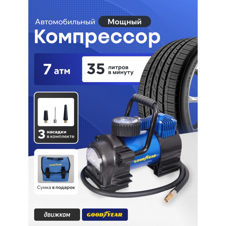 | Название | Компрессор Goodyear 35л/мин. 7 атм. GY-35L LED фонарь, съемная ручка, сумка |