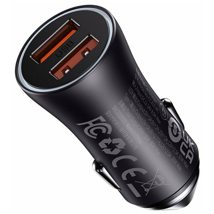 | Название | Автомобильное зарядное устройство Baseus Golden Contactor Max Dual Fast Charger Car Charger U+U 60W Dark Gray (CGJM000013) |
