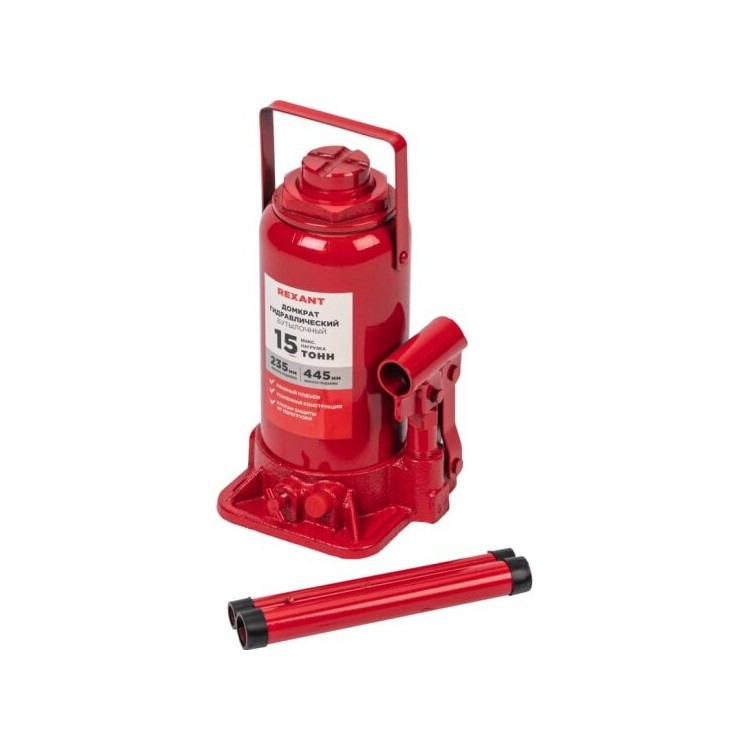 | Название | Домкрат гидравлический бутылочный 15т REXANT, цена за 1 шт |