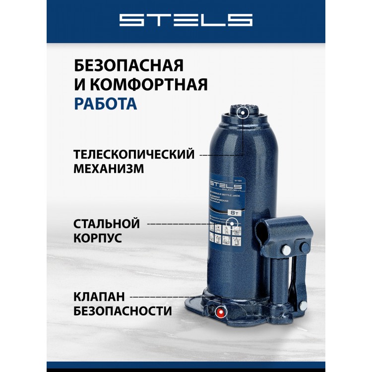 Отзывы о Домкрат гидравлический бутылочный Stels 51165 8т