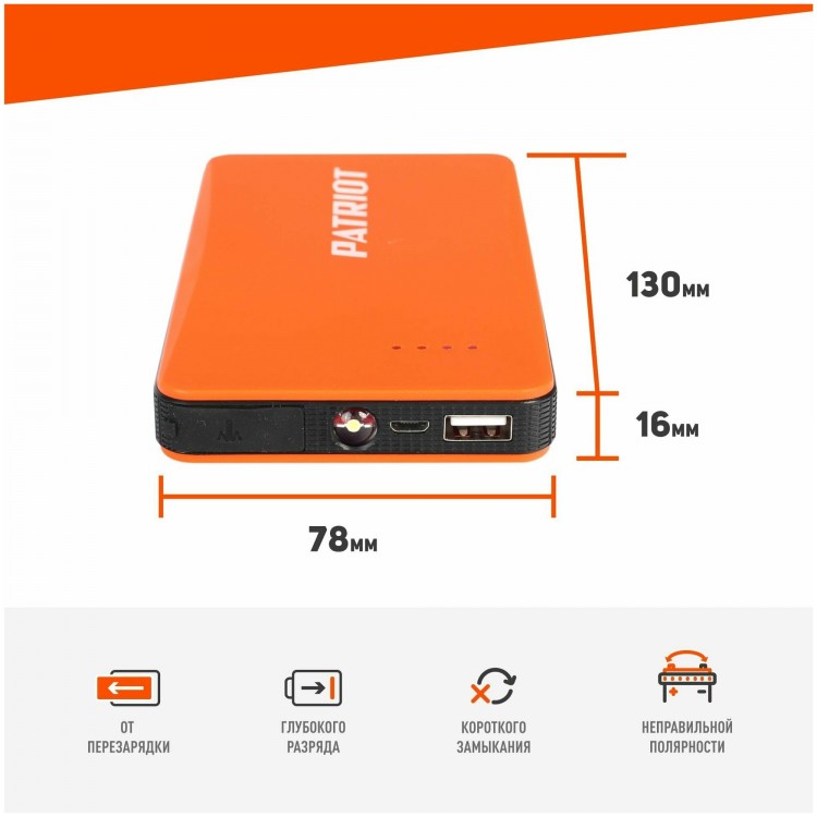 * Функции встроенного фонаря и зарядки мобильных устройств (Powerbank) делают наше пусковое устройство ещё более удобным и функциональным.