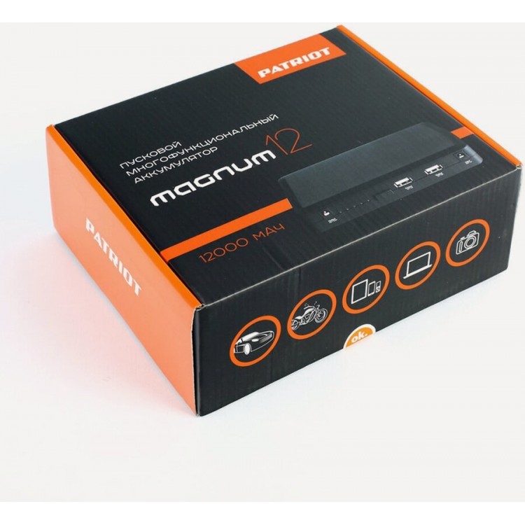 * Универсальность и надёжность. Patriot MAGNUM 12 подходит для аккумуляторов с напряжением 12 В и максимальной ёмкостью до 12 А·ч. Устройство автоматически регулирует ток заряда, обеспечивая надёжную работу.