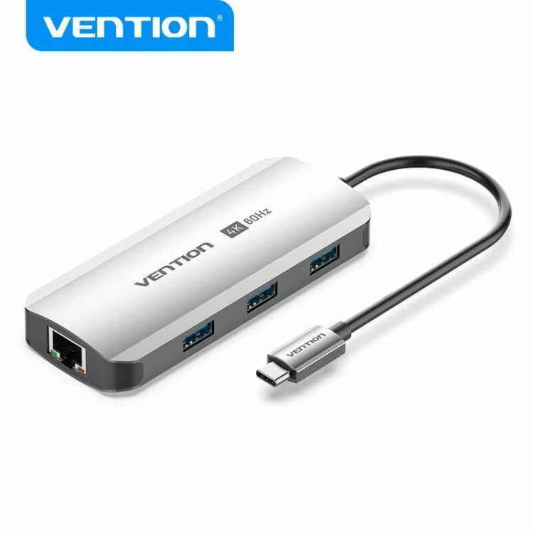 Название USB Hub, Type C 3.0 разветвитель 6 в 1 / Vention сетевой адаптер Тайп С многофункциональный, арт. TQHHB; Бренд Vention; Количество разъемов 6; Особенности Deep color, Поддержка 3D-изображения, Поддержка Ethernet-соединения (HDMI Ethernet Channel, HEC), Поддержка разрешения 4K; Разъемы и интерфейсы USB 3.0, USB Type-C, HDMI, RJ-45 Ethernet, USB Type-A; Основной материал корпуса Металл; Подходит для A4Tech, ASRock, ASUS, Acer, BQ, BenQ, Gigabyte, Intel, MSI, Nintendo; Цвет серый;